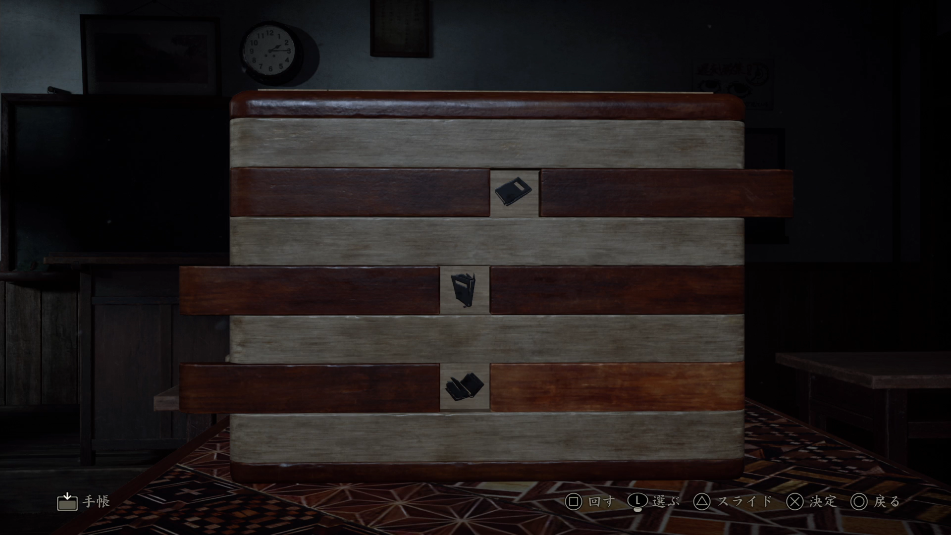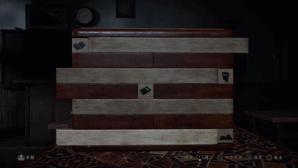 ・物語重視:②でヘアピンを見つけて③の部屋にある引き出しの中。