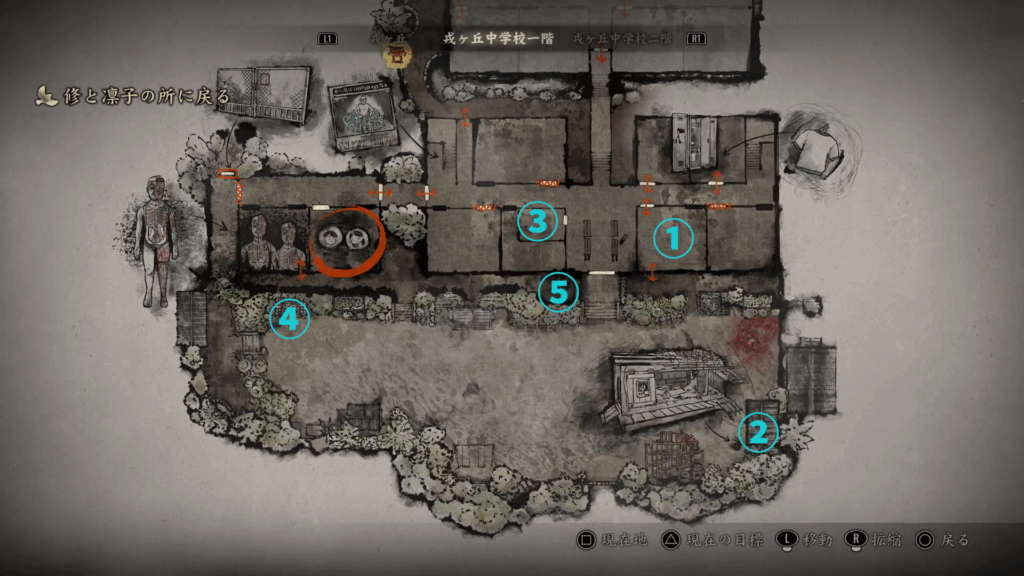 サイレントヒル fの攻略チャート(⑥戎ヶ丘中学校)になります。