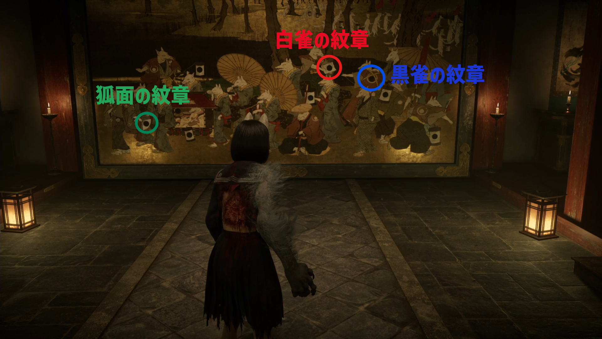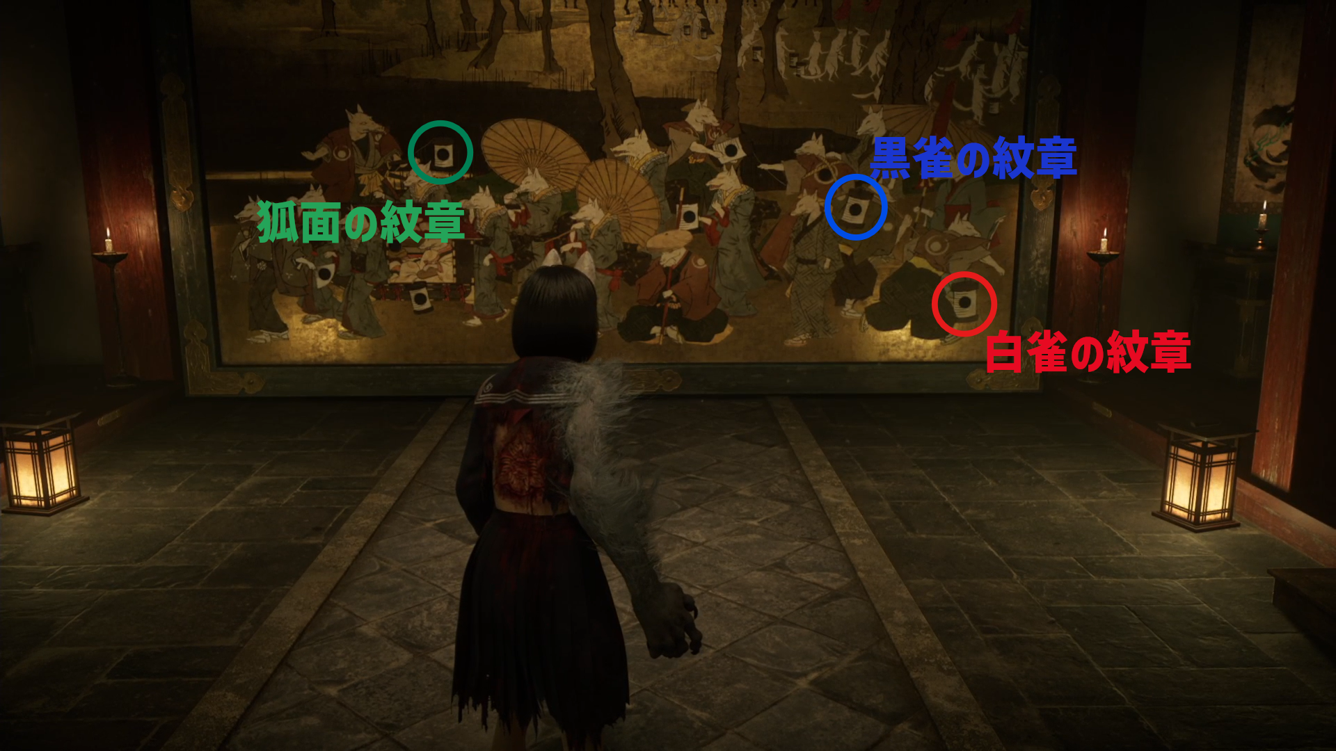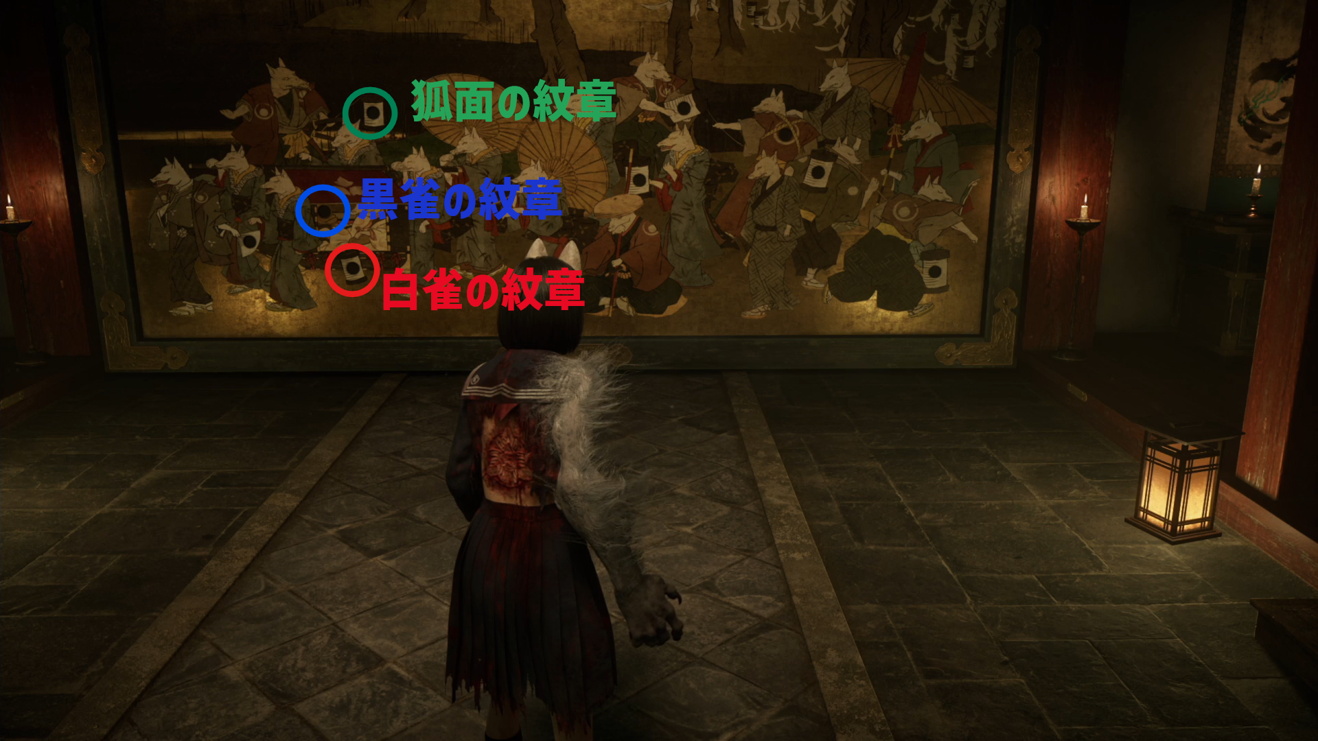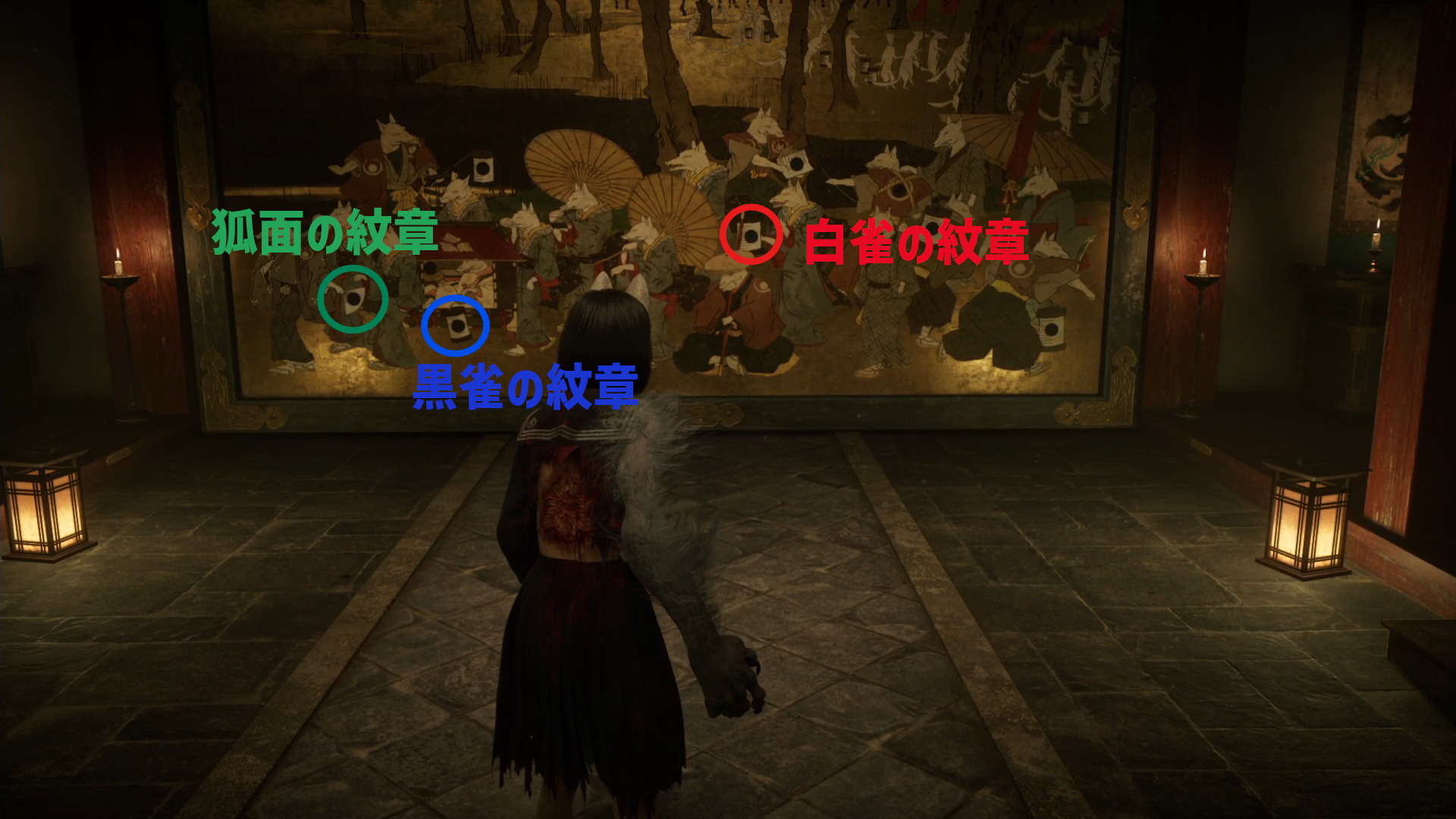 絵馬は②の場所で稲妻、③の場所で朽木、④の場所で葛の絵馬を調べる。