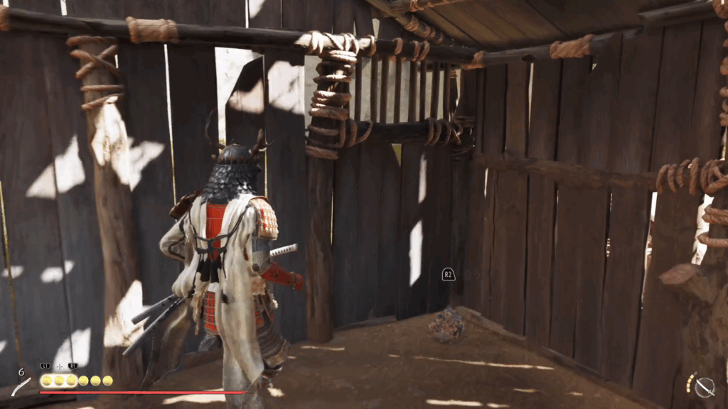 2.右に小屋があり、中に銭袋が落ちているので拾います。