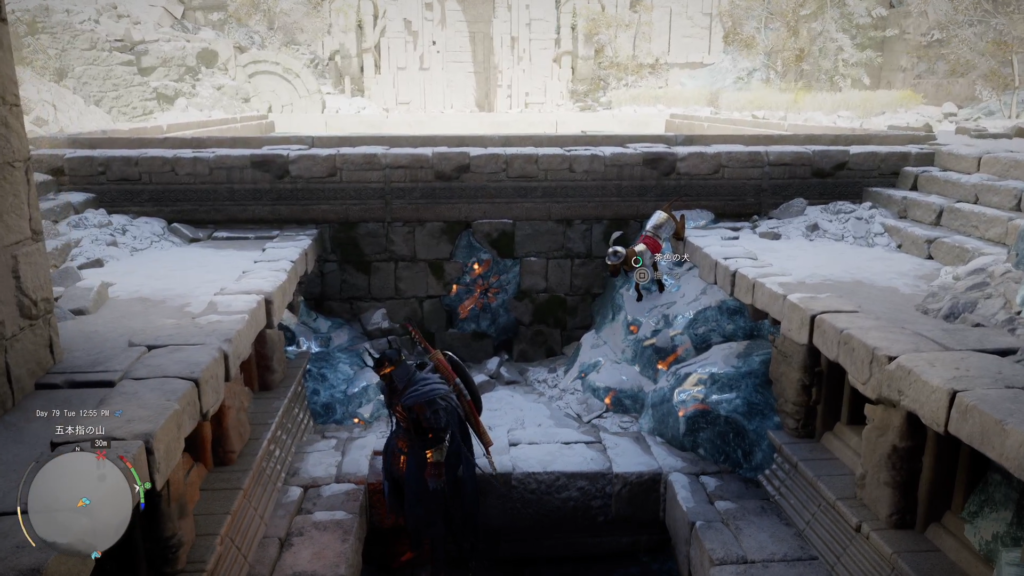 【紅の砂漠】五本指の山の謎解きの答え(五本指の山霜の遺跡) ゲーム一覧 コピー 2026.04.03 みにいち みなさんこんにちはみにいちです 紅の砂漠で五本指の山霜の遺跡の謎解きの答えを紹介します。 五本指の山霜の遺跡の謎解きの答え まず、凍っている部分を炎の元素だったり爆発矢などの炎系の攻撃で凍ってる部分を壊します。 次に、この氷の部分を炎系の攻撃で壊すと水が流れます。つるはしでもいけるらしいです。 後は、剣を差して石を動かしこの絵の通りに揃えればクリアです。 紅の砂漠攻略まとめ 攻略一覧役立ち情報
