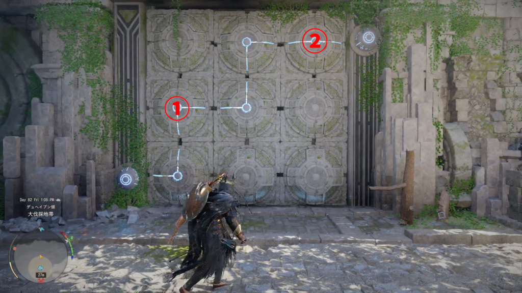 【紅の砂漠】大伐採地帯の謎解きの答え(大伐採地帯峡谷の遺跡) ゲーム一覧 コピー 2026.04.04 みにいち みなさんこんにちはみにいちです 紅の砂漠で大伐採地帯の謎解きの答えを紹介します。 大伐採地帯の謎解きの答え まず、ここを壊して水を抜きます。自分は爆発矢で壊しましたが、多分火の元素とか強力な攻撃やつるはしで壊せると思います。 次に正面の丸いところを次の順番で、掌波を使って押し込みます。 次に、右側を次の順番で押します。 次に、左側を以下の順番で押すとクリアできます。 紅の砂漠攻略まとめ 攻略一覧役立ち情報