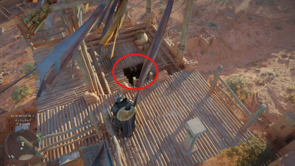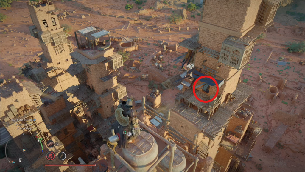 3つの石を手に入れたら、村で一番高い建物の屋上に行きます。