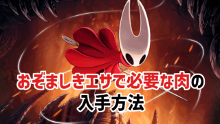 ホロウナイト シルクソングのタスク「おぞましきエサ」と細切れの肉、焼かれた肉、串刺しの肉の入手方法についてまとめました。